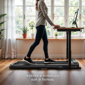 Nesunkiai kaitaliokite sėdimą darbą ir aktyvų judėjimą, nepertraukdami savo rutinos. Bėgimo takelis puikiai telpa po reguliuojamo aukščio stalu ir leidžia vaikščioti dirbant, dalyvaujant susitikimuose ar kalbant telefonu.